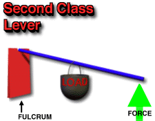 With a Class 2 lever, the fulcrum is moved to one end of the lever, with the load in the middle and the force at the other end. Every time you pick up a wheelbarrow you use a class 2 lever, with the wheel’s axle is the fulcrum.